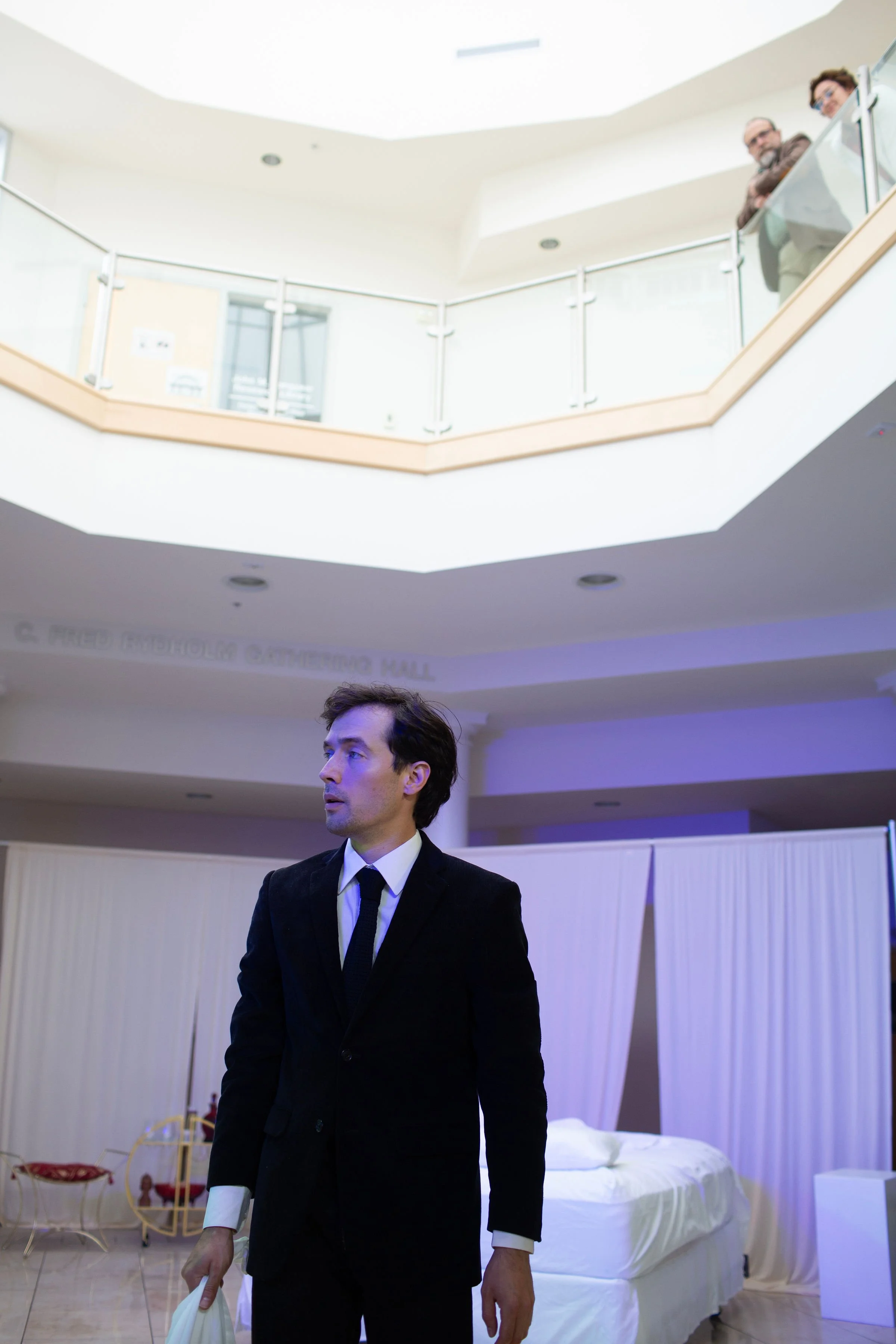And thus begins our play as well as our director’s note, with a question. (There will be many tonight, questions) Answer (if you like) with a gander in a mirror, to your left, behind you or- upon the stage. The “characters”- and not to “o'erstep the modesty of nature”- but also the human’s portraying them. Our writer is here, “in my mind’s eye”, skillfully fashioning characters that reveal the variety of human psyche. Our human hero (an oxymoron) firstly steeped in overthought- if there can be such a thing when the “play’s the thing”. Our villains’: complex, damaged and damaging. Our innocence, our clowns, our ghosts. All rattling about in our home, in Denmark, “Denmark’s a prison”, and in the rank sweat of our enseamed bed. Our suffering minds.